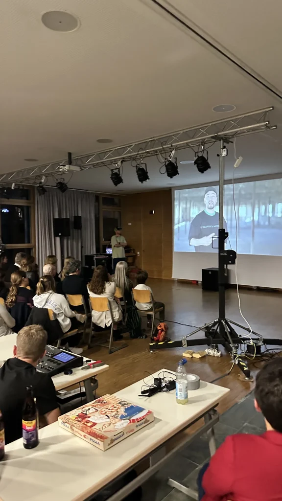 Vor rund 80 Gästen und den Englisch-Oberstufenkursen berichtete er von seinem Weg aus Afghanistan, wo künstlerische Freiheit kaum möglich ist. Heute lebt er in Spanien und baut dort seine musikalische Karriere neu auf.